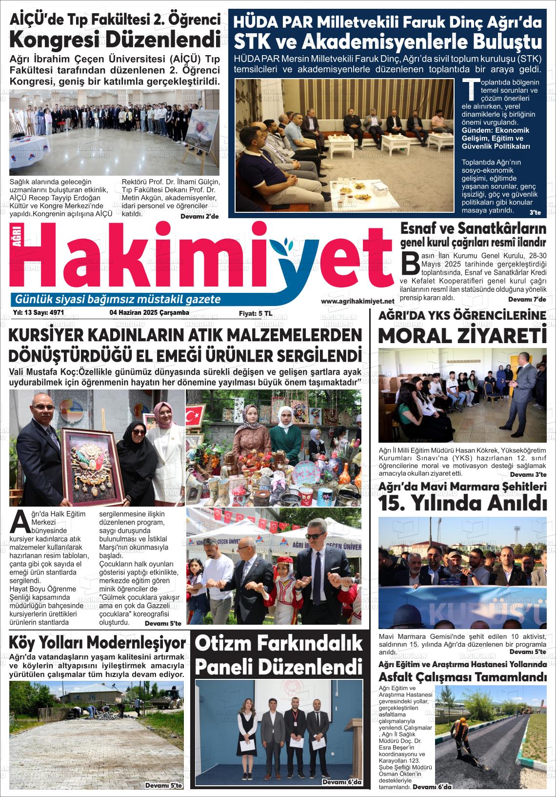 Ağrı Yerel Gazeteleri 26 Ocak 2026, Pazartesi Günü Manşeti