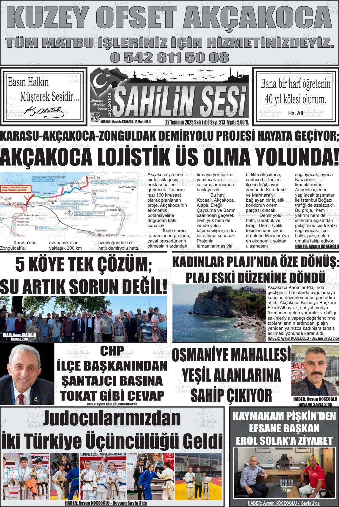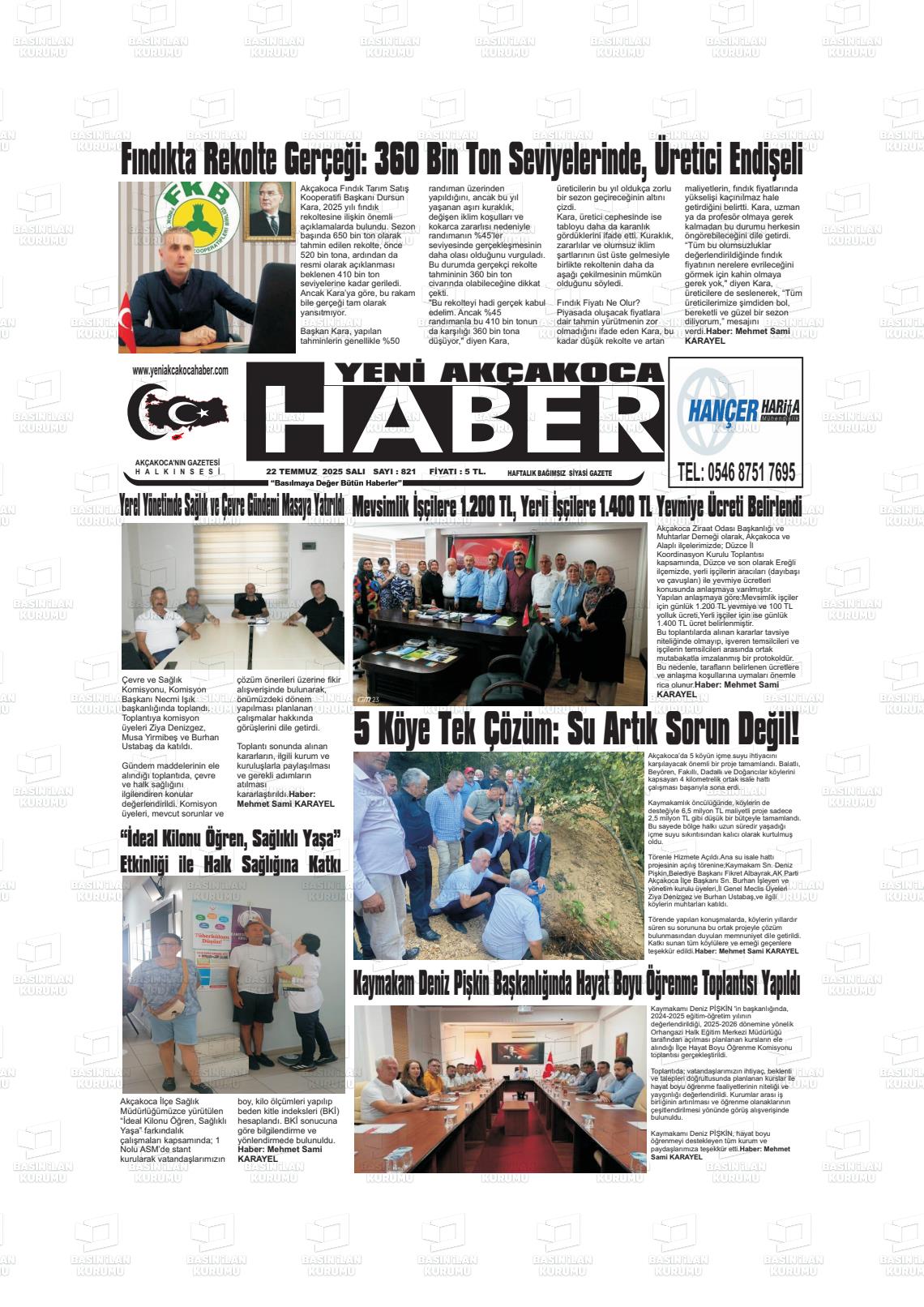 Düzce Yerel Gazeteleri 27 Kasım 2025, Perşembe Günü Manşeti