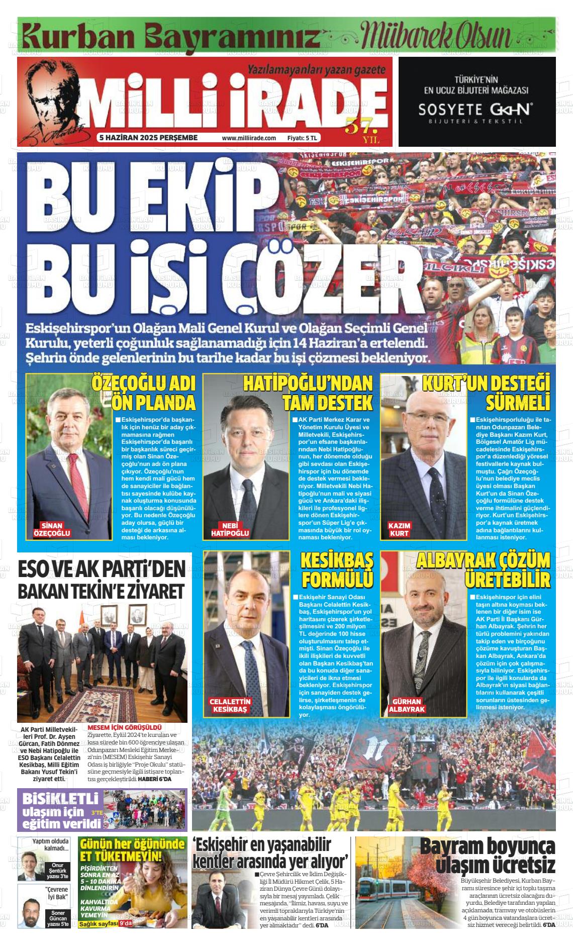 Eskİşehİr Yerel Gazeteleri 26 Ocak 2026, Pazartesi Günü Manşeti