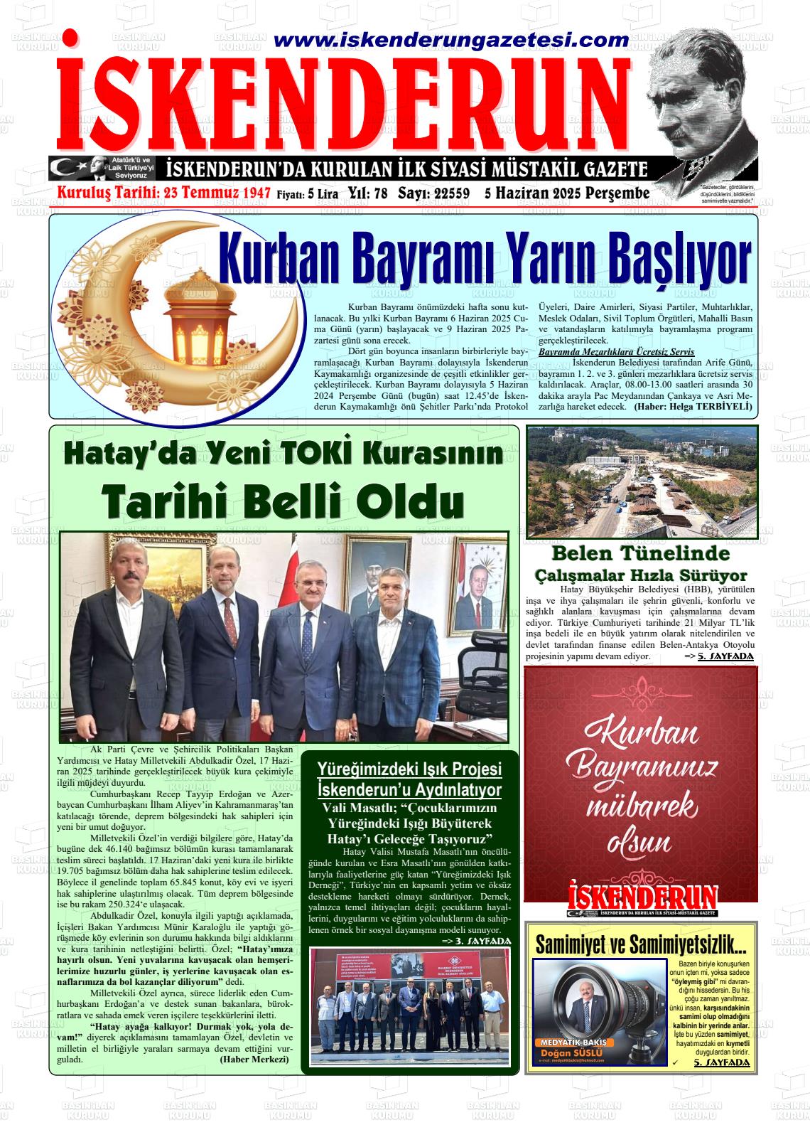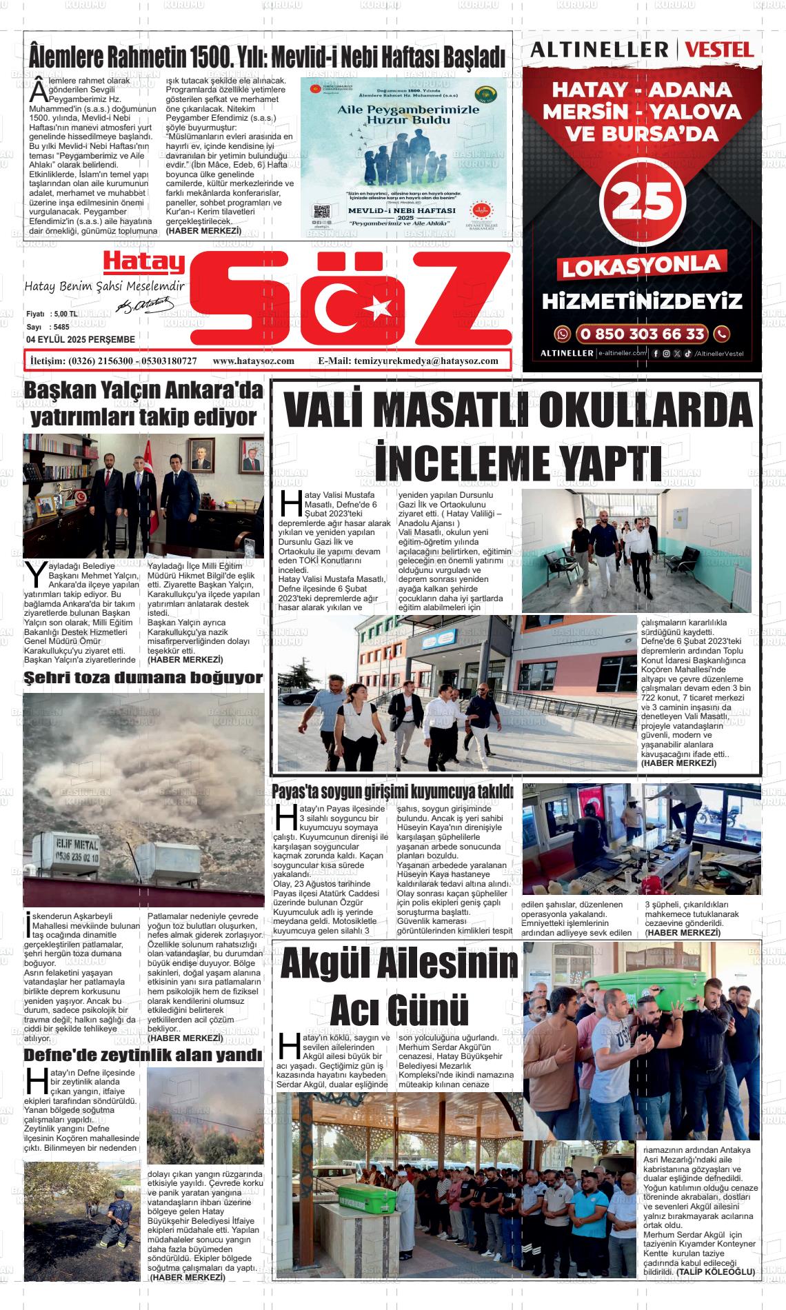 Hatay Yerel Gazeteleri 26 Mart 2026, Perşembe Günü Manşeti